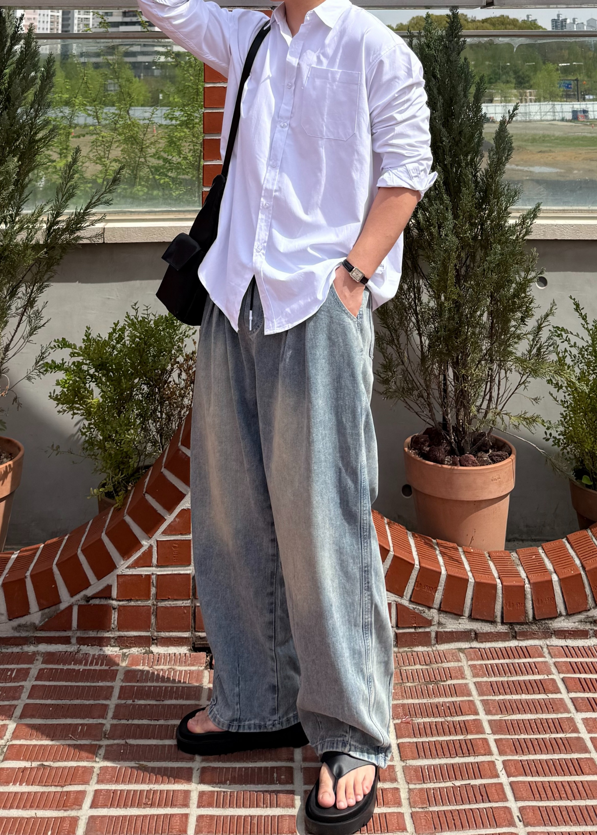 Designed for all-day comfort and a flattering silhouette, the Curved Washing Denim combines relaxed style with thoughtful functionality. The soft, curved fit gently enhances the leg line while providing extra room around the thighs—ideal for those seeking comfort without sacrificing shape. A breathable, stretchy waistband with an adjustable drawstring ensures a personalized fit that moves with you. The high-waisted, elongated leg design visually lengthens the legs, while the fade-resistant denim maintains its clean look over time.